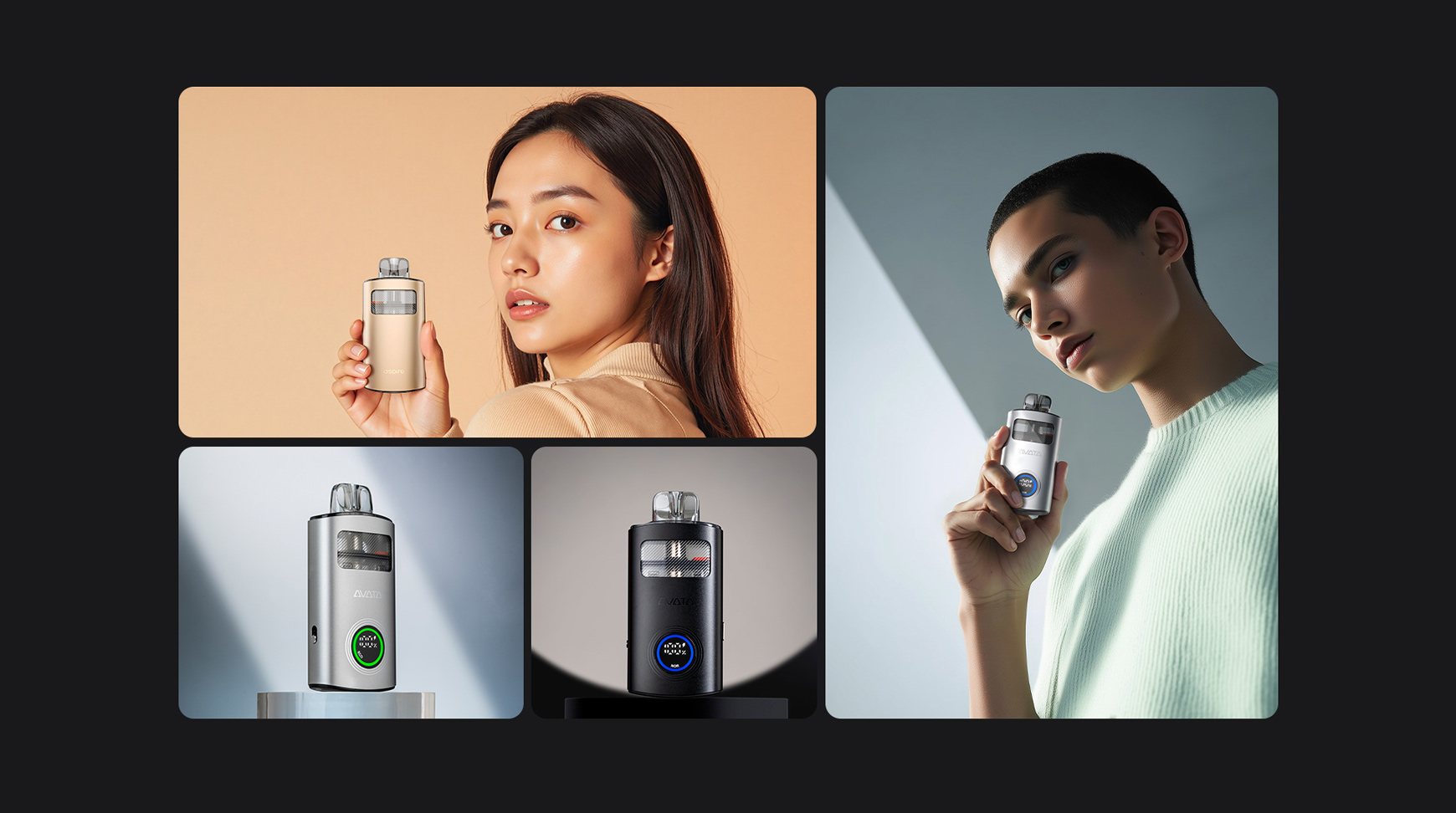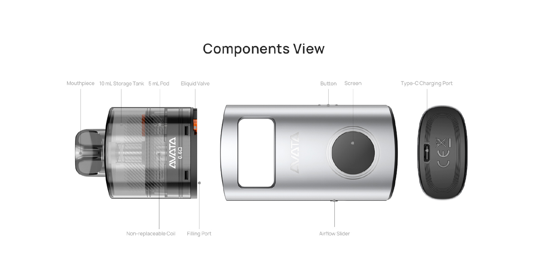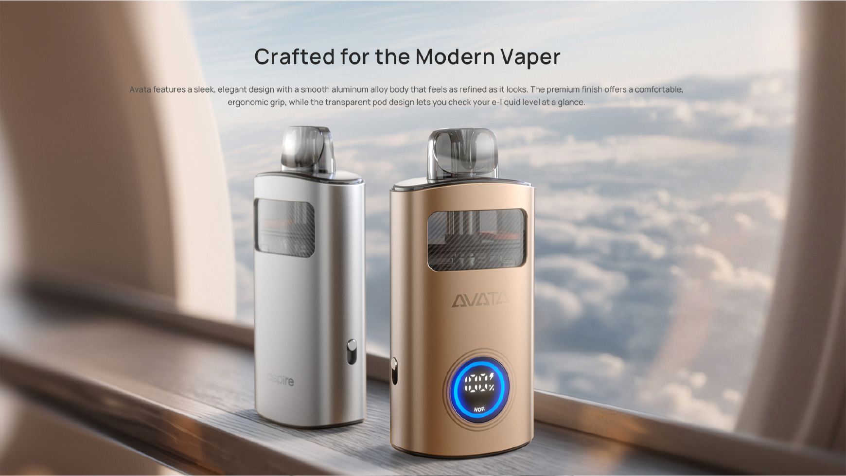 Avata arbore un design élégant et épuré, avec un corps en alliage d’aluminium lisse aussi raffiné au toucher qu’à la vue. Sa finition haut de gamme offre une prise en main confortable et ergonomique, tandis que le réservoir transparent permet de vérifier le niveau de e-liquide d’un simple coup d’œil.